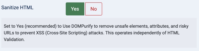 JCE Pro now uses your browser’s DOMParser to parse incoming HTML, with DOMPurify providing extra sanitisation. This improves performance and reliability, and strengthens protection against malformed or unsafe markup. DOMPurify is enabled by default and can be turned off via Sanitize HTML (in the Editor Global Configuration or Editor Profiles → Editor Parameters → Cleanup & Output).