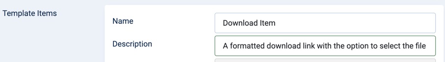 Each Template Item now supports an optional Description, shown inline beneath the item’s name in the Template Items list.